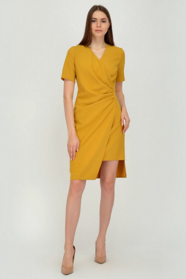 Фото товара 19915, горчичное платье с асимметричным кроем